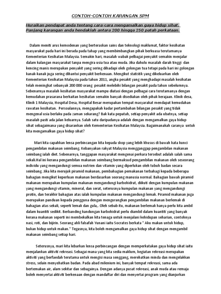 Koleksi Karangan Amalan Gaya Hidup Sihat Dan Pencemaran Alam Project Pdf